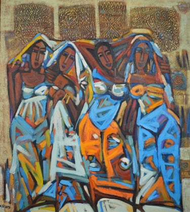 Vibrant, sharp and suggestive, when it is not unconventional; this is how we best describe modern Algerian painting. Squeezed between Afro-Berber and Mediterranean influences, enriched by Arabic and Islamic cultures, and challenged by Orientalism, and by the mark of L'Ecole d'Alger.